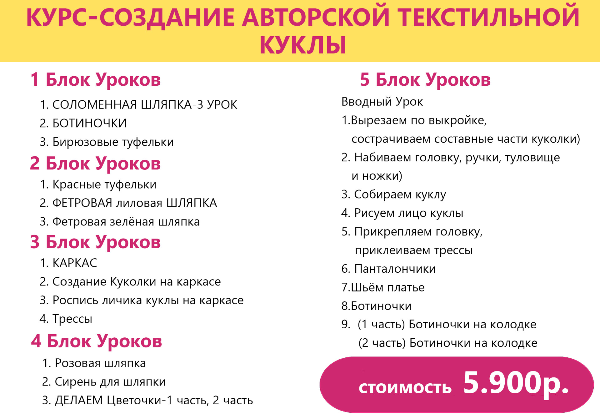 КУКОЛЬНЫЙ КУРС ПО СОЗДАНИЮ АВТОРСКОЙ ТЕКСТИЛЬНОЙ КУКЛЫ